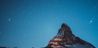 Villa Suiza Proyecta Imágenes de Banderas en Montaña como Símbolo de Solidaridad ante la Pandemia