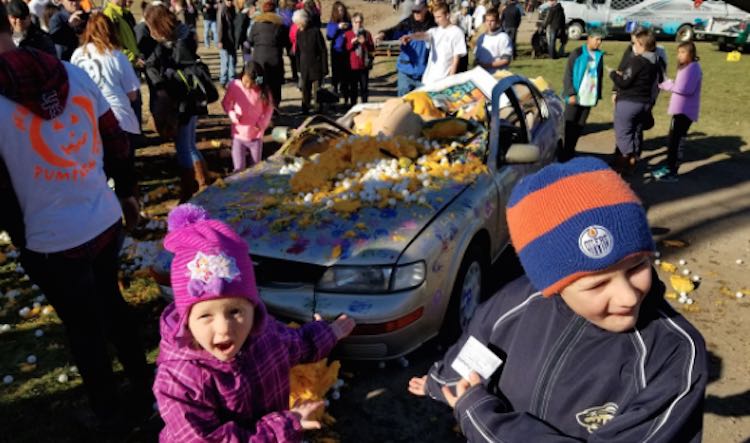 Watch 1,300-Pound Pumpkin Drop From a Crane and Smash Car in the Name of Charity