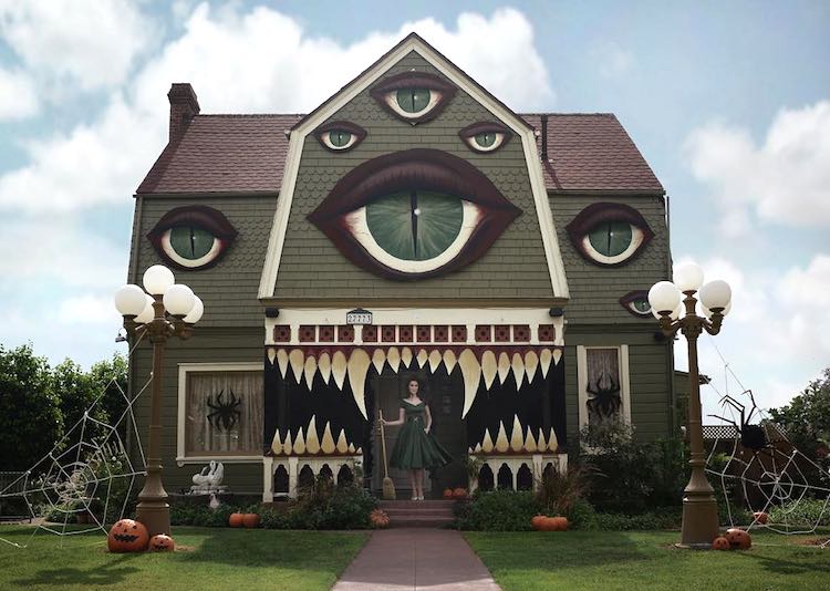 Giant Eyeballs Painted on Parent’s Home for Halloween is Surreal Treat