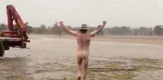 Watch Drought-Stricken Farmer Spontaneously Rejoice in Rainfall Wearing Nothing But a Hat