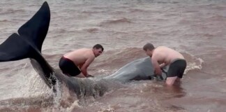 Good Samaritans Stripped Down to Briefs to Rescue 3 Stranded Whales on Canadian Beach (WATCH)
