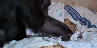 The Beautiful Moment a Mother Chimp Scoops Up Her New Baby the Day After C-Section–LOOK