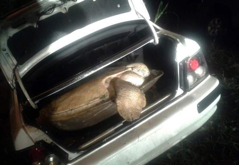Police Rescue Giant Sea Turtle From Car’s Trunk