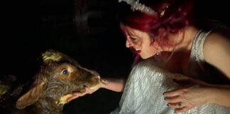 Muddy Bride Sacrifices Dress to Deliver Calf During Wedding Reception