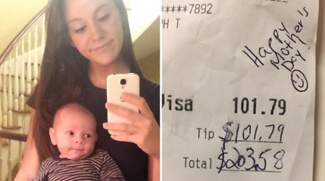 Kind Patrons Leave Waitress Huge Mother’s Day Tip After Learning Her Baby Was Sleeping at Home