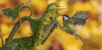 Birds Feast on Sunflower Seeds in Perfect Autumnal Scene Captured From Kitchen Window
