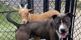 A Dog and Goat Are So Close The Shelter Decides to Only Place Them as a Team