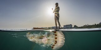 Photographer Records the Moment a Giant Jellyfish Floats Beneath Paddleboarder