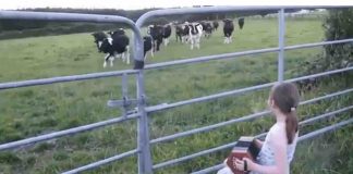 Watch the Sweet Moment a Herd of Cows Charge Up a Hill to Listen to Little Girl’s Concertina
