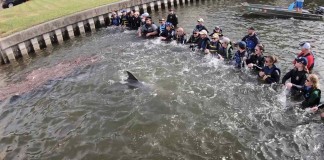 Human Chain Formed by Florida Biologists to Save Stranded Dolphin