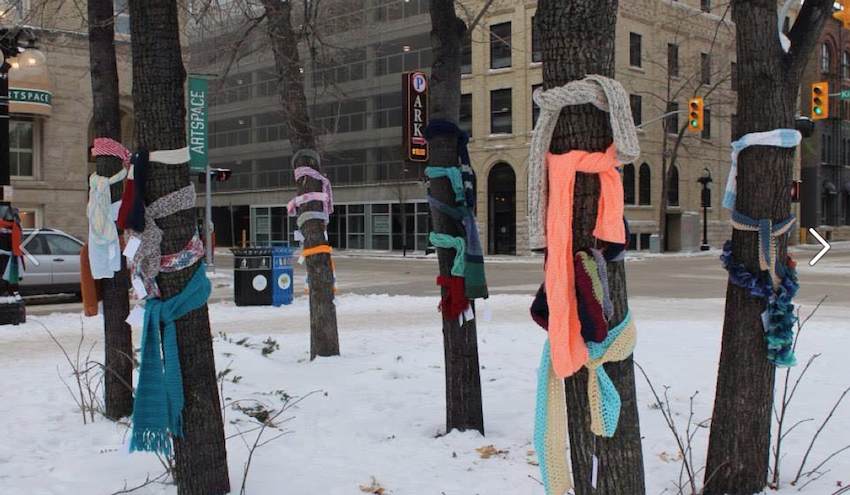 Yarn Bombing Movement Spreads to Share Scarves, Hats in Public Places
