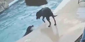 Watch Dog Rush to Rescue Struggling Canine Friend After He Falls into Backyard Pool