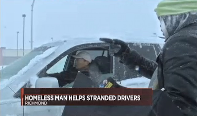 Homeless Man in Blizzard Just Wants to Help, Pushes Out Cars