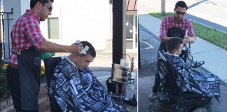 When Man in Wheelchair Can’t Get into Shop, Barber Happily Cuts His Hair on the Sidewalk