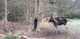 Watch Brave Man Free Moose Trapped By Tree Branches