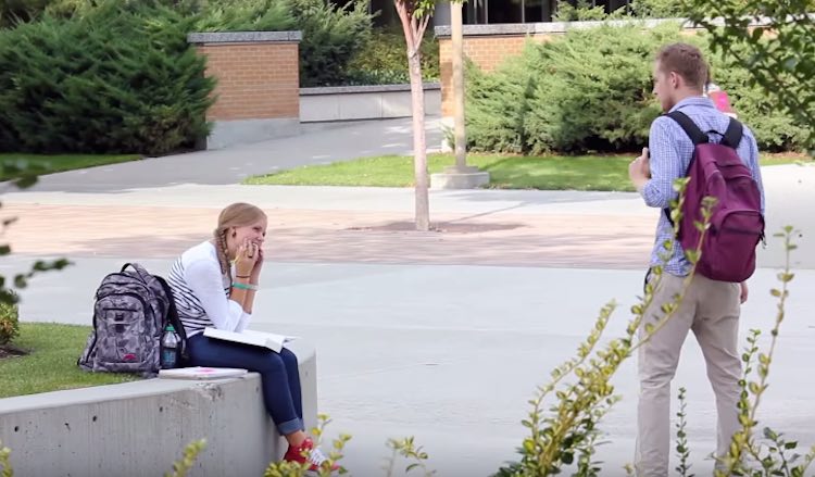 So for this video in 2012, he wandered around campus paying compliments to passing students – but in a loudly exaggerated tone.