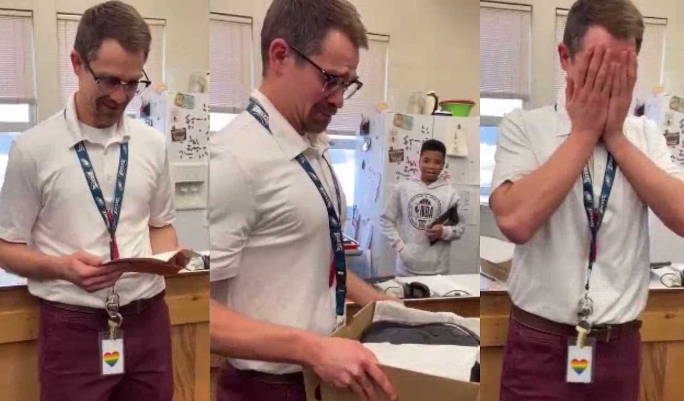 The students then pooled their money in order to surprise their teacher with a brand new pair of replacement shoes—and Payne could hardly contain his emotions.