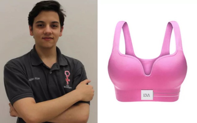 18-year-old Julian Rios Cantu is the designer of the Eva bra: a brazier with biosensors inside the lining that can moderate the temperature, texture, blood flow, and coloring of a woman’s breasts.