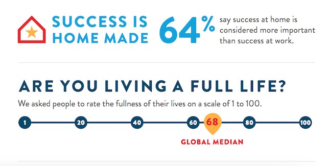A whopping 64% of the people said success was home-made, and doing well at work was secondary to a happy and successful home life. This foreshadowed how 32% said that family was the key to fulfillment, followed by 8% that chose “Giving”, and 7% pointing to “Health”.