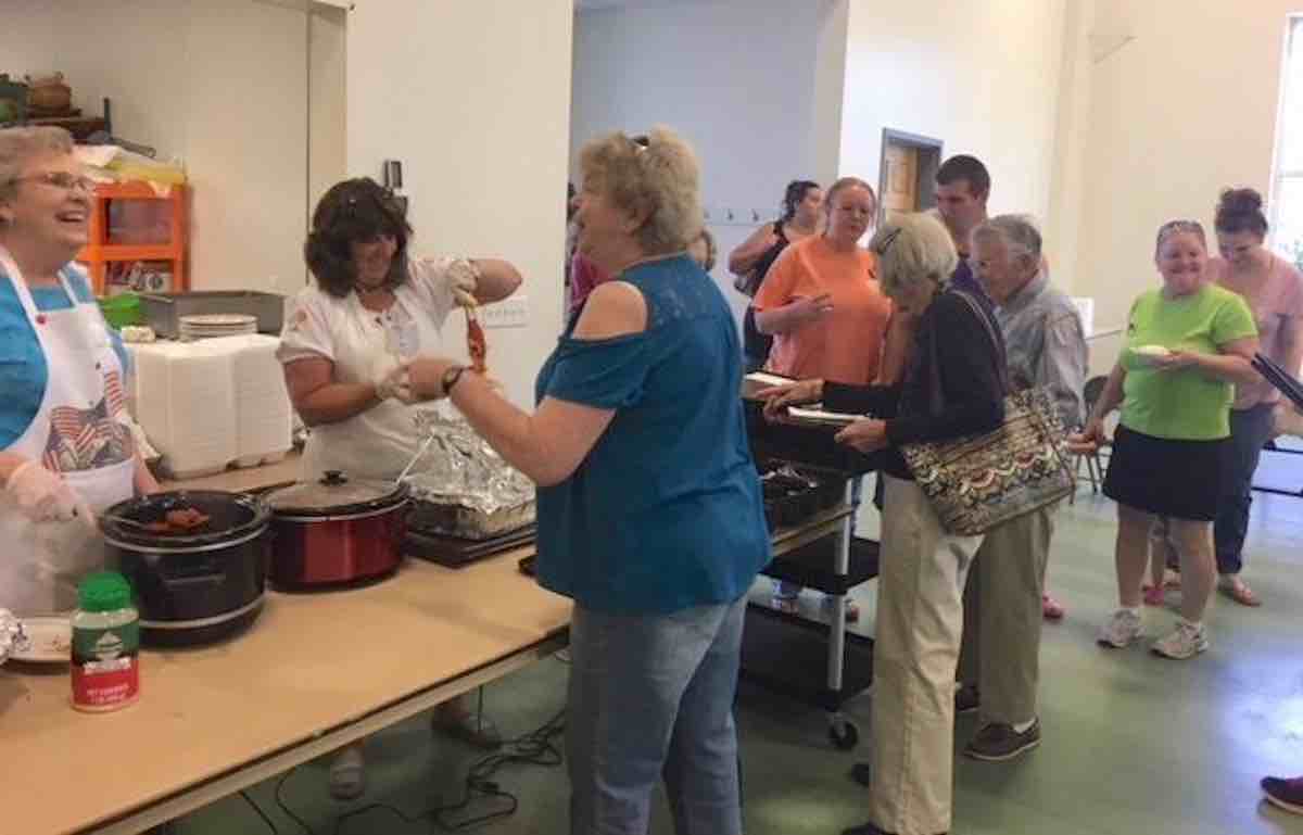 Every Monday, a large group of volunteers serves a free hot lunch to everyone in Chincoteague, Virginia.