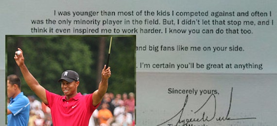 Golf Pro Tiger Woods wrote an encouraging note to a high school student struggling with a stutter.