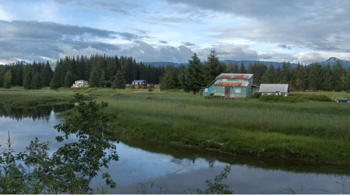 The town is completely surrounded by the distant mountains and icefields of Glacier Bay National Park on three sides and the ocean on the fourth.