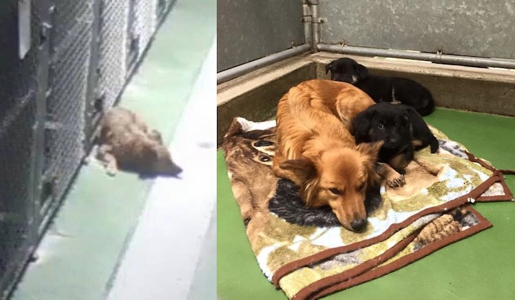 4. Dog Breaks Out of Kennel to Comfort Frightened Puppies (WATCH)