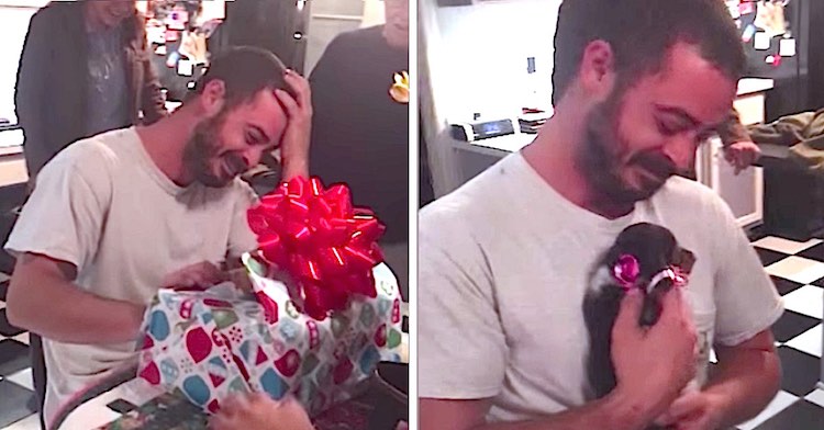 Peter Coukoulis may have been trained by the military to be tough as nails – but that didn’t stop him from crying when he unwrapped a furry little Christmas present.