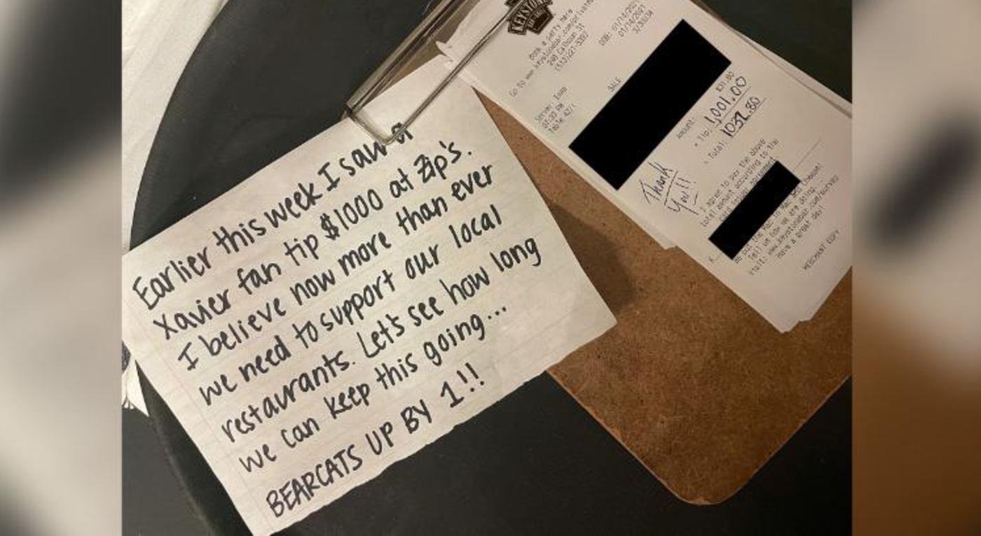 Keystone soon spread the word of the generous gratuity to Facebook, explaining the tippers who preferred to remain nameless weren’t in it for the glory but in hopes of inspiring others to do likewise. They closed the post by throwing a little friendly fuel on the fire. “It’s your turn, Xavier fans! Who will be one-upping the Bearcats by leaving a $1,002 tip at your favorite local bar or restaurant?”