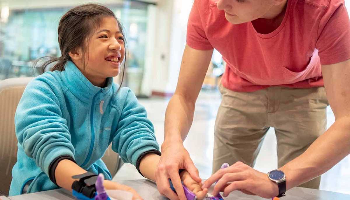 After several months of sizing and collaboration, Tori has been fitted with a new set of 3D-printed hands. She can now throw a baseball, write, and blow bubbles.