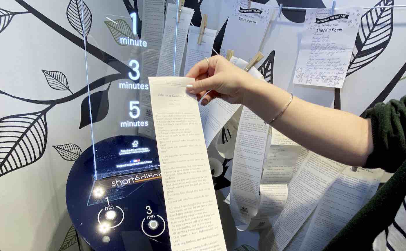 The machines on the campus of the University of Lincoln print out tiny works of literature that are dispensed after someone chooses how long they want to be reading— one, three, or five minutes—all at the touch of a button.