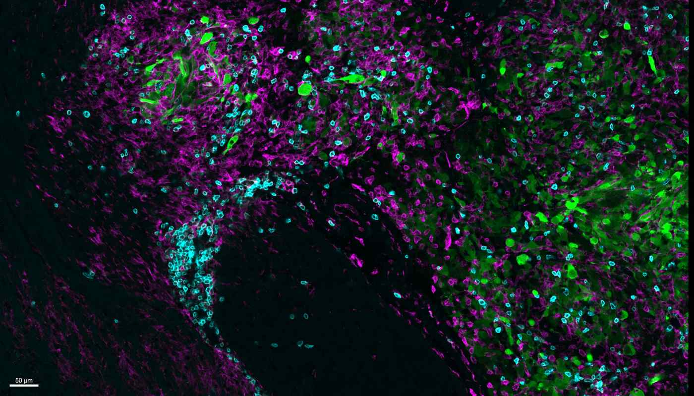 The researchers found that by allowing T cell activity to take place, CD4+ T cells secreted a protein called interferon-gamma that caused the tumor to throw up “stress flags” while simultaneously alerting microglia. A specially adapted immune cell for the brain environment, they started eating up these stressed tumor cells.