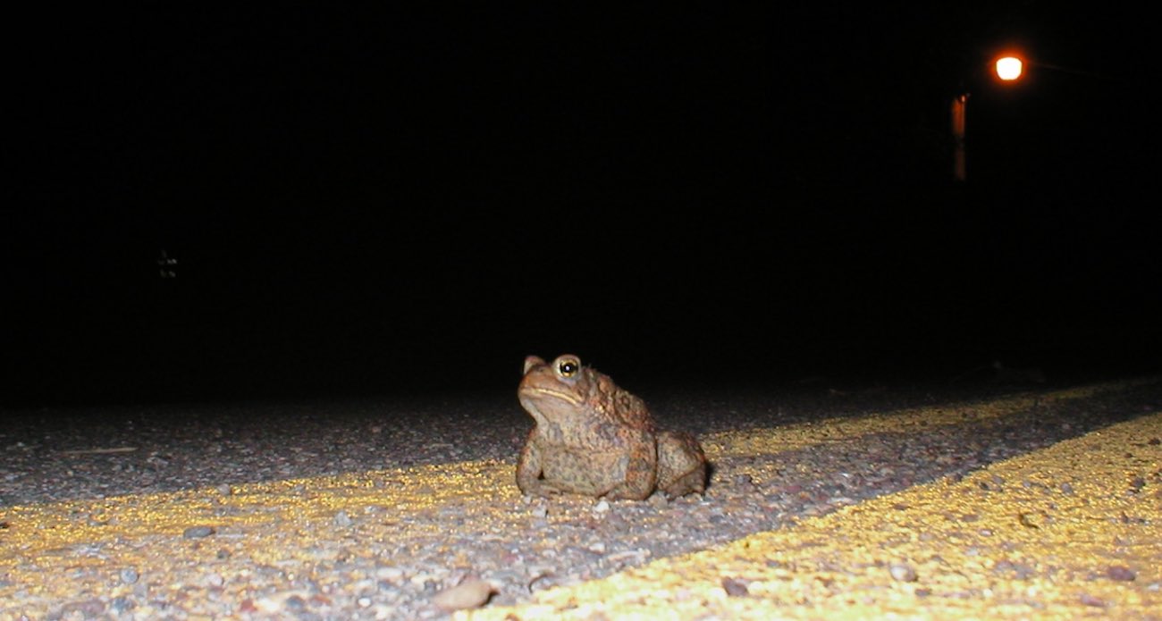 If you don’t live in a wet or rain-prone area, and you’ve never been on the road during frog/toad mating season, you might think “how hard is it to just avoid running them over?” But it’s not that simple, for starters because they can gather in such numbers that swerving to avoid one puts your tires on another, and small frogs and news look just like leaves and twigs on the dark tarmac through a rain-splattered windshield.