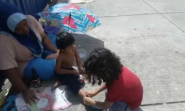 While adults are working to provide housing for the homeless, this youngster took it upon himself to give a little boy his shoes and socks.
