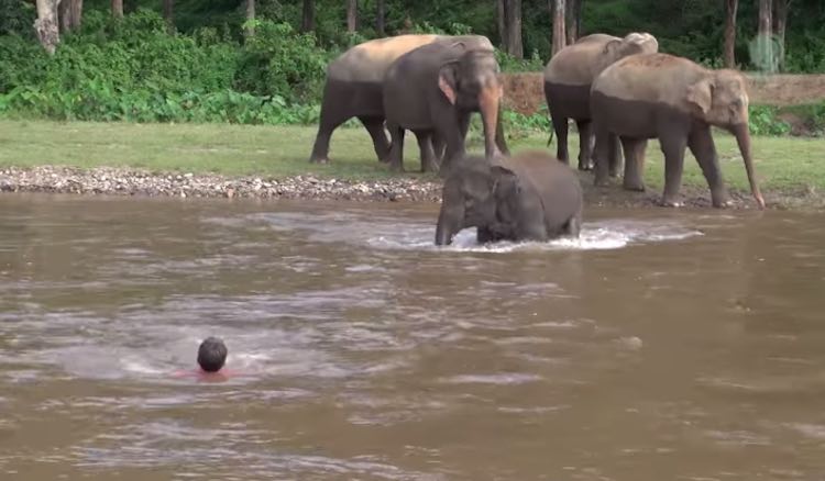 Kham Lha the baby elephant loves her human trainer so much, she isn’t afraid of putting herself in danger to rescue him – even if the danger is imaginary.