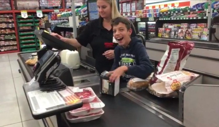 Shaeleane the cashier patiently watched over the teen as he scanned each item grinning from ear to ear. Though it may seem like a tedious task to some, Andy was ecstatic.