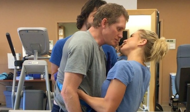 Through intensive physical therapy at a Richmond, Virginia rehabilitation center, the Navy SEAL has slowly regained motor control. Though he is still unable to use his vocal cords, he communicates with his wife Laura by softly mouthing his words.