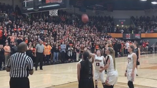 This high school student sent the crowd into hysteria after she scored the final point of the basketball game.