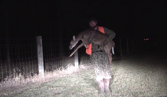 The hunter bids him a fond farewell before placing it back on the ground so it can run back into the wild.
