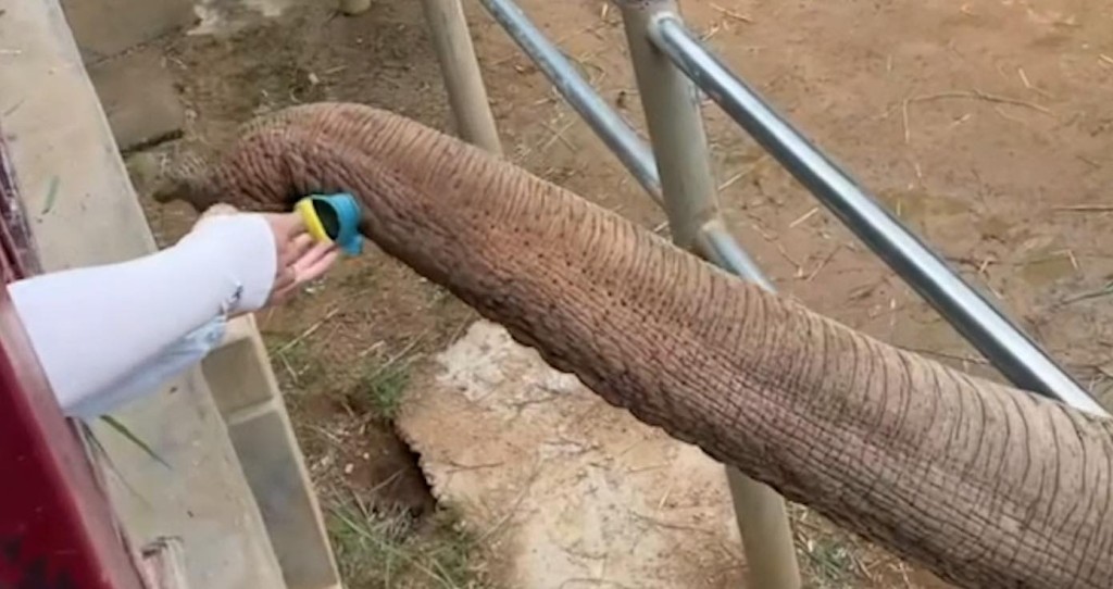 And the elephant waited for the thank you pat on its trunk and then withdrew.