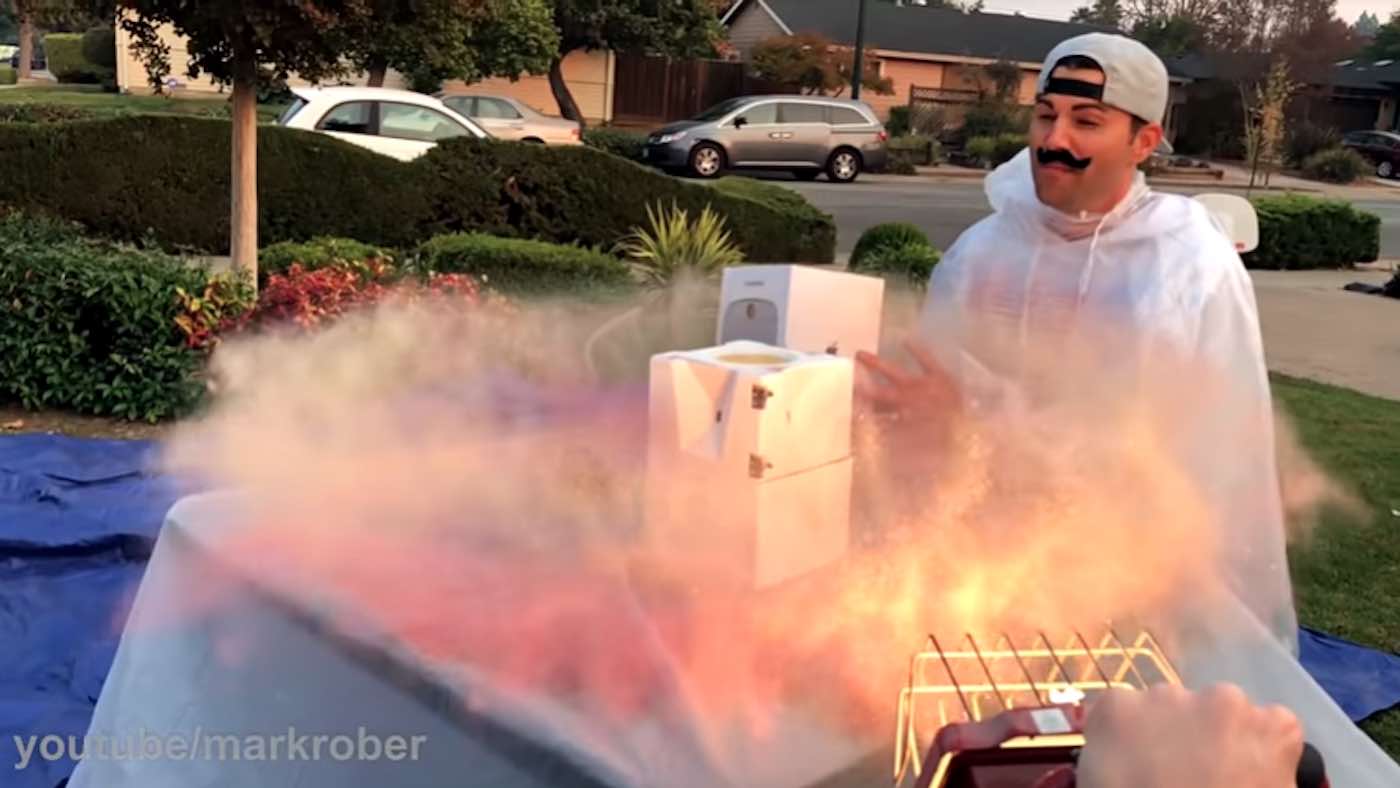 Rober then created an ingenious little contraption that resembled an Apple HomePod delivery – except once the pilferers removed the exterior of the packaging, the motion detonated a “glitter bomb”.