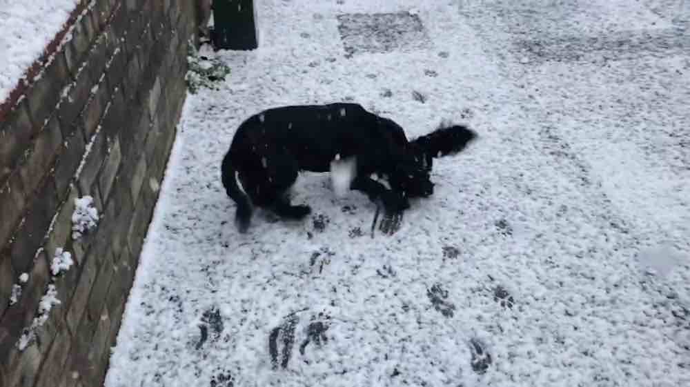 In a video uploaded by his owners, Jo Ellery and Matt Hunter, Truffle the working cocker spaniel can be seen investigating the fluffy white flakes falling outside of his home in York, England last week.