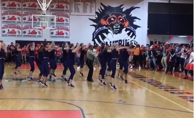 The officer, Lietenant Deuntay Diggs, flawlessly copied every cheerleading move the squad could dish out.