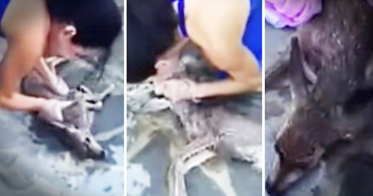 Even though this baby deer had stopped breathing after falling into a pool, this rescuer was not about to give up on it.