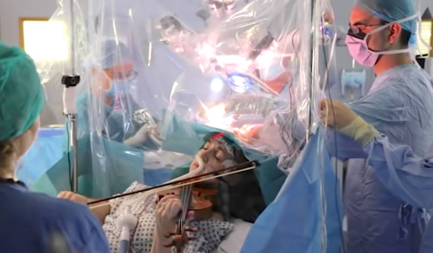 The unusual approach was taken to ensure areas of the patient’s brain responsible for delicate hand movement and coordination—crucial components when playing violin—were not inadvertently damaged during the millimeter-precise procedure.