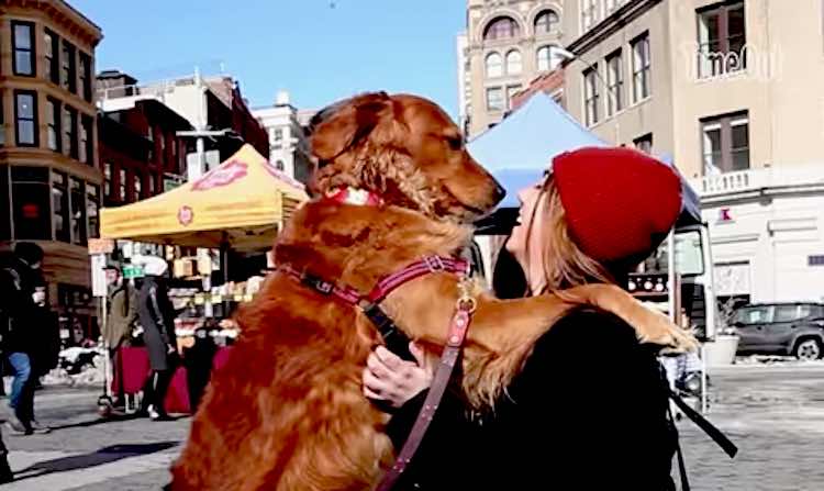 Louboutina – or Loubie for short – is a New York City Golden Retriever whose only job is to hug stressed out city-goers on the street.