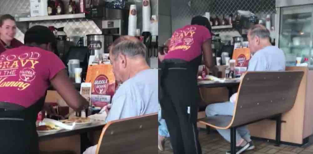The footage has now garnered thousands of views from social media users praising the Huddle House employee’s act of kindness.