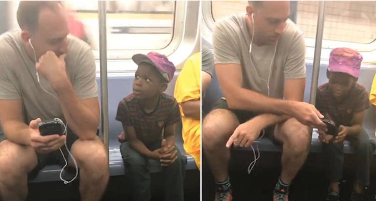 A simple exchange between a man and a boy on the New York City subway is melting hearts across the internet.