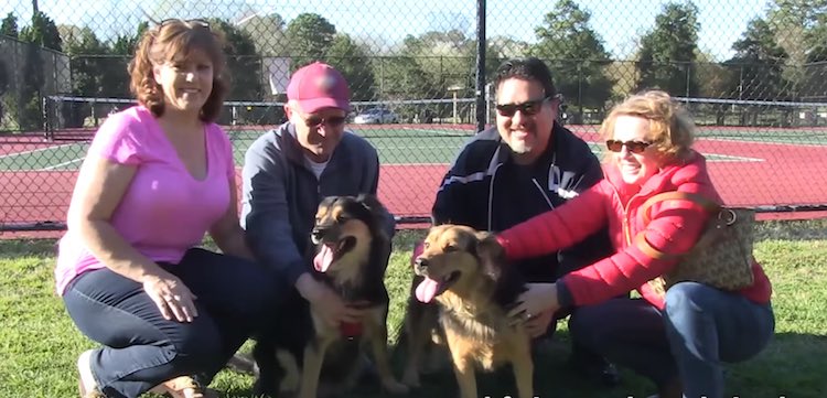 The found forever homes with two different families, but PETA kept up with them and arranged for a reunion after each had settled in to their new surroundings.