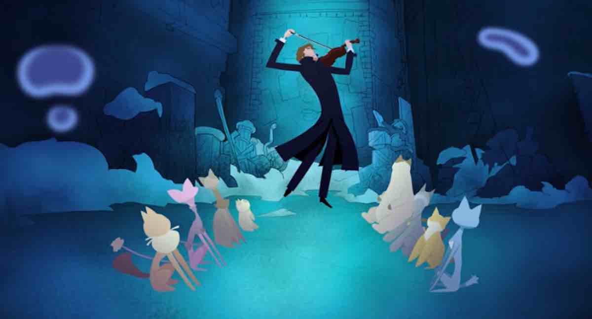 The violinist delves into “Caprice No. 17” by Nicolò Paganini – a delightful musical number that spurs the local tomcats into an amusing dance number rife with romance and rumpus.